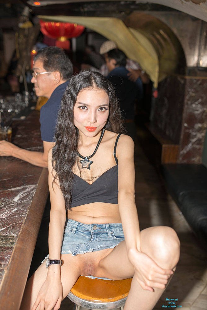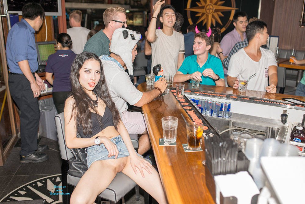 Sexy Asian girl flashing in a bar Gallery